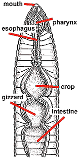This diagram shows a generalized animal digestive. Start studying earthworm digestive system. The uniqueness of microbial diversity from the gut . It has a double transport system made of . An earthworm's digestive system runs the length of its body.